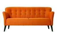 3-seat orange fabric sofa with black legs, 186x45x85cm (WxSHxH)