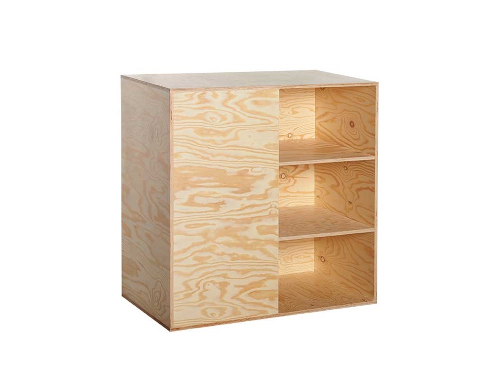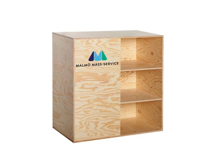 Disk KAPPA, 1000x500x1000mm, trä. Spegelvänd disk, hyllor på båda sidor. Hyllans storlek: 48 cm djup, 47 cm bred, 30 cm höjd mellan varje hylla.