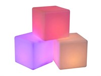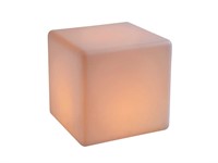 Kub med belysning, 40x40x40cm. Kan skifta färg på ljuset.