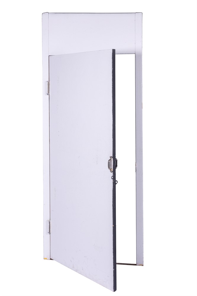 Vitmålad dörrmodul i mässvägg, 100x3,5x250cm (BxDxH). OBS! Lås ingår ej
