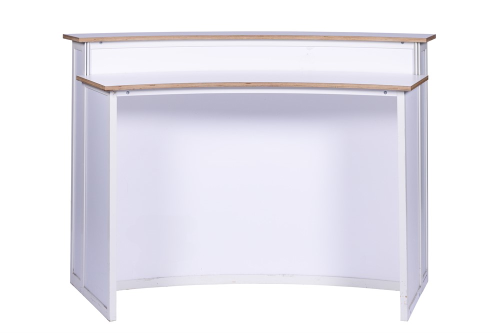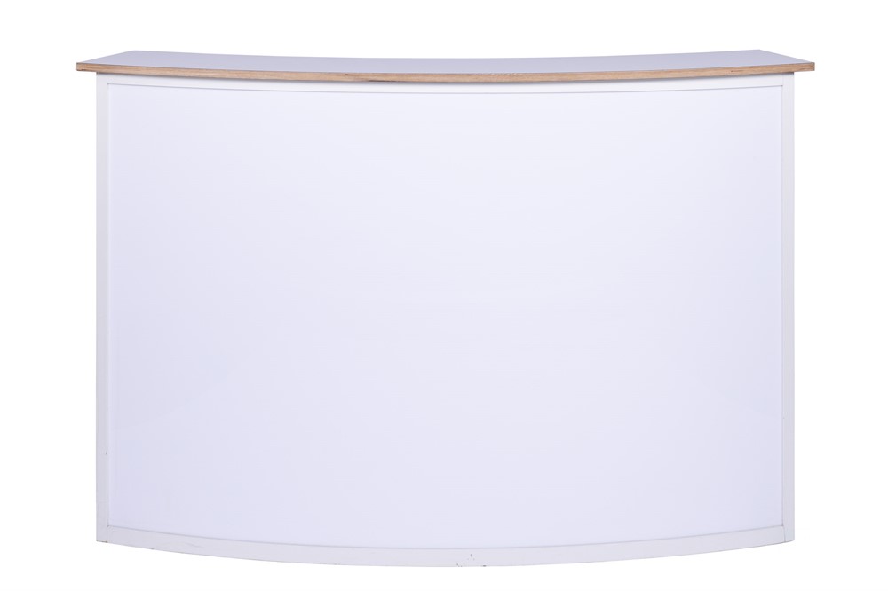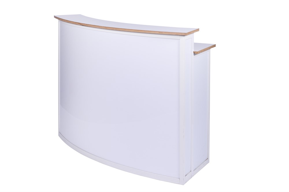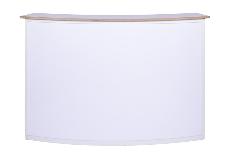 Rundad, bakgrundsbelyst ljusdisk i vitt, 165x71x110cm (LxBxH)