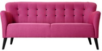 3-sitsig rosa tygsoffa med svarta ben, 186x45x85cm (BxSHxH)