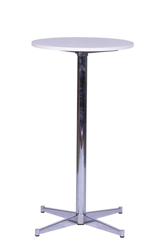 Barbord med vit skiva i trä och kromat underrede, 60x105cm (ØxH)