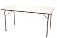 Fällbord med vit skiva i trä och kromat underrede, 160x80x74cm (LxBxH)